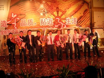10日上午,佛山市金舵陶瓷企業(yè)集團(tuán)董事長兼總經(jīng)理羅有成、金舵集團(tuán)營銷總經(jīng)理陳起橋、集團(tuán)副總經(jīng)理潘鑒聯(lián)等主要領(lǐng)導(dǎo),分別就集團(tuán)戰(zhàn)略布局、金舵陶瓷年度營銷工作總結(jié)和營銷政策、集團(tuán)生產(chǎn)管理等各方面分別向廣大經(jīng)銷商作了相關(guān)的主題報告,從產(chǎn)品質(zhì)量建設(shè)、品牌定位、營銷規(guī)劃等多方面的詮釋了“貼近好生活”的品牌內(nèi)涵,與眾多經(jīng)銷商進(jìn)行廣泛的交流,共同把握金舵陶瓷2008年的市場全局。
