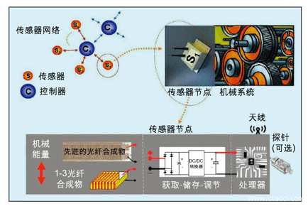EH本身并不是新概念,諸如手搖無線電、手搖供電的電筒、風車和太陽能都是應用類似的理念。其新穎之處是將EH應用到超低功耗的嵌入式電子設備中。高電荷壓電陶瓷和光纖合成工藝技術的結合使得自供電系統(tǒng)能用在很多種電子系統(tǒng)中。