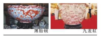 這些展品中,有一件《白玉深浮雕九龍?zhí)卮蟾住,是千件陶瓷中最昂貴的精品。此缸仿清宮珍藏,缸口直徑88厘米,重量150公斤,是工藝美術師歷時半年才精雕細刻而成。