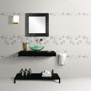 衛(wèi)浴的色調(diào)以黑白灰為主。墻面灰色的亞光瓷磚中間,因為貼了一道西德石雕花墻磚,使單調(diào)的墻變得豐富起來,在整體視覺上讓人感覺很舒服。