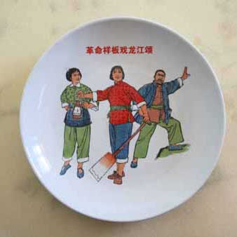 在農(nóng)貿(mào)城一爿古玩商店,擺放著不少“文革瓷”,店主指著一套八只革命樣板戲內(nèi)容的瓷盤(pán)介紹說(shuō),這是他2000年從江蘇一個(gè)朋友處換來(lái)的,當(dāng)時(shí)只有千把元錢(qián),但現(xiàn)在能升值幾萬(wàn)元吧。他說(shuō),講起來(lái)對(duì)朋友還有點(diǎn)不好意思,不過(guò)給朋友的東西也升了,只是升的空間沒(méi)這個(gè)大。這位店主介紹道, “文革瓷”大致可以分為日用瓷器和觀賞瓷兩大類(lèi),觀賞瓷的藝術(shù)水平和價(jià)值普遍要高于日用瓷,當(dāng)時(shí)人們看到較多的是領(lǐng)袖瓷器塑像、八大革命樣板戲、乒乓外交、太平天國(guó)英雄人物造型以及“紅衛(wèi)兵”塑像等內(nèi)容。同時(shí)期的日用瓷包括杯、壺、碗、盤(pán)、瓶、筆筒等,上面大多有“文革”特征的圖案。