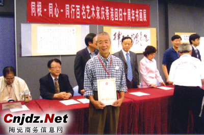 近日,河北省邯鄲市峰峰礦區(qū)陶瓷大師閆保山攜女兒閆英(陶瓷一級藝術(shù)家)應(yīng)邀參加了由中國文化名家協(xié)會(huì)、中國國際友好交流促進(jìn)會(huì)、中國海峽兩岸文化經(jīng)濟(jì)促進(jìn)會(huì)共同舉辦的“同根、同心、同行”百名藝術(shù)家慶香港回歸十周年書畫展,該展會(huì)在香港上環(huán)文藝中心召開,全國各省(市)百名書畫家及諸多書畫有業(yè)績者蒞臨大會(huì)。會(huì)上,閆保山和女兒閆英被授予“中港文化使者”榮譽(yù)稱號。所展作品會(huì)上經(jīng)權(quán)威專家認(rèn)真篩選評審,閆大師書畫作品《磁州窯圖案》獲金獎(jiǎng),為省、市爭得了榮譽(yù)。