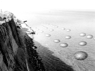 第二件作品的產(chǎn)生來自第一件的啟發(fā)。兩組造型是完全相同的,但放棄了原來以盲文的形式來呈現(xiàn)障礙這個主題。作品完全用雪里白釉噴制而成,純粹的造型上出現(xiàn)了凹凸不平并有刺傷皮膚和口唇可能的堅硬的肌理。確切地說,這一組器皿是無法使用的,令人寒冷、顫抖。迷戀宴席的人們強烈的心理反應可能迅速形成,或?qū)е卵獕捍蠓壬呋蛳陆怠?br />