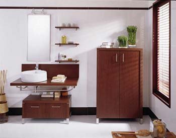 現(xiàn)代時(shí)尚的浴室家具款式大方、線條流暢利落、造型講究。在材質(zhì)上基本上以實(shí)木、玻璃甚至皮革為主,或是以橡木、楓木等實(shí)木經(jīng)過防潮處理,保持其天然木材的紋理與質(zhì)感;或是以鋼化玻璃為主,加以艷麗濃重的色彩,保持其晶瑩剔透、時(shí)尚的味道;或是以玻璃的面板、皮革與木制的柜體,高貴典雅不乏現(xiàn)代氣息。時(shí)尚的浴室柜體大多以掛式為主,下部懸空,一則保持了空間的通透感,二則實(shí)用方便清潔。