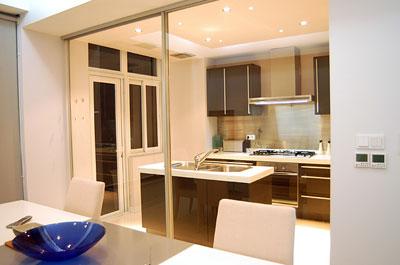 建議一:空間改造要巧 每個(gè)廚房空間在建筑時(shí)均會(huì)有防火墻或過頂梁等基本結(jié)構(gòu),對(duì)廚房隔墻改造時(shí),一定要考慮結(jié)構(gòu)的現(xiàn)有情況,做到“因勢(shì)利導(dǎo),巧妙利用”。如要改造的墻體上有過梁,可以保留此過梁,將它改造成“開放式廚房”的吧臺(tái)燈光頂,而不能將它拆除,以免影響到建筑結(jié)構(gòu)的穩(wěn)定性。