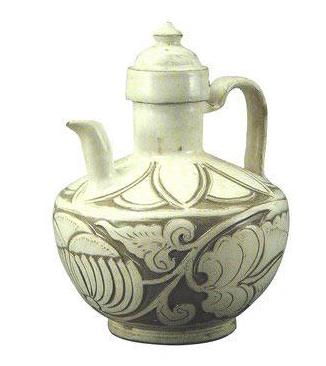 但此時大多數(shù)的北方窯場燒不出完美的青綠色瓷,北方的瓷土遠不如南方細膩,以磁州窯為主的白地黑花產(chǎn)品與南方細膩、輕薄、幽靜的青瓷藝術(shù)在風格上相去甚遠,然其靈動鮮活的紋飾頗受人們的喜愛。同時期北方瓷器還流行著一種剔花裝飾。