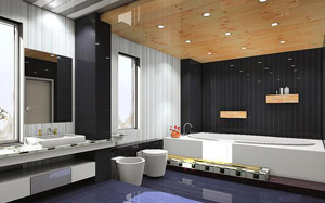 大戶型衛(wèi)生間可以有很大的空間來進行設(shè)計,超大浴缸,木制吊頂,三排內(nèi)嵌式射燈,高檔馬桶和洗漱臺,一個有意設(shè)計出來的一級臺階將大戶型衛(wèi)生間內(nèi)的浴缸與洗漱臺分成兩個,營造出高雅的情調(diào)。