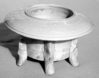 我以前曾將此類器物歸入油燈類,后經(jīng)研究發(fā)現(xiàn),如果是日常使用的油燈的話,內(nèi)胎應(yīng)該施釉的,否則油要滲透到胎里,會造成油料浪費(fèi),聰明的先人不會做出如此愚笨的事情。因此,我認(rèn)定它是一種造型別致的香爐。后來,在耀州窯博物館,我看到這種類型的器物果然標(biāo)識為香爐。