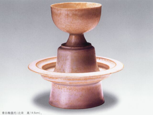 盞托又稱茶船、茶托(茶拓),是承托茶盞以防燙手的用具。據(jù)《唐語(yǔ)林》記載,此物始于“建中(唐德宗年號(hào))蜀相崔寧之女,以茶杯無襯,病其熨手”,而用蠟來固定杯子。后人乃將茶托中部做成環(huán)狀,即成盞托。事實(shí)上,盞托在東晉時(shí)已出現(xiàn),宋、遼時(shí)樣式繁多,托口顯著增高。