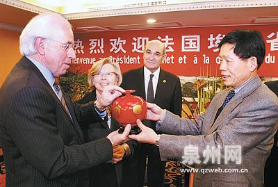 會見時,朱明向客人介紹了我市經(jīng)濟社會發(fā)展和建設海峽西岸經(jīng)濟區(qū)現(xiàn)代化工貿(mào)港口城市的基本情況。朱明說,埃羅省與泉州有著良好的友好交往基礎。前年,雅克·阿特蘭副省長曾到泉州訪問,去年泉州代表團也到法國考察。這幾年,泉州的一些文化團體在全國友協(xié)的指導下,多次到法國去演出和展覽,特別是泉州木偶劇團在法國演出的時候受到了法國民眾的贊賞。有了過去的交往基礎和現(xiàn)在簽署的兩地結好意向書,相信兩地之間各方面的友好交流與合作會更加深入、更加廣泛。