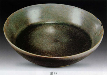 “芝麻紋”開片:這類開片形態(tài)與唐三彩釉面開片類似,細如芝麻顆粒,但因附著在瓷化胎質上,附著力相對強,釉層無翹起現(xiàn)象。唐長沙窯制品最具代表性(圖25)。