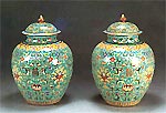 10、由道光時(shí)開始出現(xiàn)了作為陪嫁用的五件一套的器物、(即一件瓶、兩件將軍罐、兩件花觚)俗稱“五大件”。