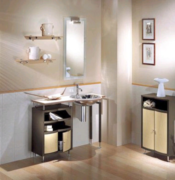 對于多數(shù)衛(wèi)生間面積小的家庭而言,造型簡單的浴柜既耐用又耐看,不會過時?梢愿鶕(jù)衛(wèi)生間的風格和色調(diào)選擇浴室柜的顏色和材料。一般來說,如果用實木做基材,要問清是否經(jīng)過防水處理,表面漆要經(jīng)過高溫高壓處理才不易起皮、脫落。目前市場上的浴柜所用的主流基材是防水中纖板,中纖板是將經(jīng)過挑選的木材原料粉碎成粉末狀后,經(jīng)特殊工藝加工而成的一種“鋼性”板材。其強度、密度有高、中、低之分,防水性能極佳,是高檔浴柜的必選之材。