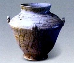 圓口、溜肩、鼓腹、圈足,肩部堆塑交錯排列的繩索紋樣。通施青釉,釉面光潤,胎釉結(jié)合緊密,瓷化程度已接近于現(xiàn)代瓷器水亞。它是東漢晚期瓷器由原始瓷向近代瓷器過渡的一個標(biāo)志.