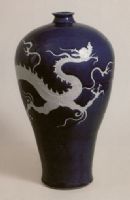 景德鎮(zhèn)窯齊藍(lán)釉淺刻白龍紋梅瓶