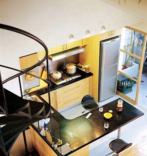 另外,廚房中總有些小角落,折疊或長度可調(diào)節(jié)的連柜餐桌可以充分利用這些小角落,而且上面做餐臺,下面還可以做推拉式高柜,這種儲藏能力很強的柜體大大減少了對空間的需求。如果是開放式廚房,將料理臺延伸出來做成小酒吧也是不錯的構(gòu)思。