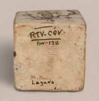 說 明: 器呈四方形。器外均施青白釉,青花呈灰黑色,筆繪簡練隨意,清新活潑。