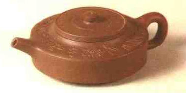 清代宜興著名紫砂藝術(shù)家陳鴻壽設(shè)汁的紫砂茶壺,陳鴻壽、號(hào)曼生、浙江錢塘(今杭州)人,生于清乾隆三十三年(1768年),卒于道光二年(1822年),是很有成就的文學(xué)家、書畫篆刻家,屬篆刻“西泠八家”之一。他從嘉慶二十一年(1816年)起,當(dāng)過3年溧陽縣宰,因酷愛紫砂藝術(shù),親自參與紫砂壺的制作,曾于繪各種紫砂壺式樣圖,由紫砂藝人楊彭年兄妹3人制作,世稱“曼生壺”。曼生壺造型簡(jiǎn)練,造型取材寓意深刻,壺底多鈐“阿曼陀室”篆書銘款,壺把下多有“彭年”篆書小印章。最有特色的是,多在壺體弧度最大的部位鐫刻銘文。這些銘文或?yàn)樵娋,或(yàn)槿嚆~器銘文,由陳鴻壽本人及其幕僚書寫、篆刻,曼生壺的藝術(shù)成就在于將紫砂壺與詩、書、印等文人藝術(shù)結(jié)合起來,提高了紫砂壺的文化品位。曼生壺在社會(huì)上流傳很廣,除楊氏兄妹所做,還見有萬泉、少山等其他工匠的名款。(見如下圖)