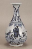 說 明: 青花紋飾,青花色深灰黑,人物造型奇特。