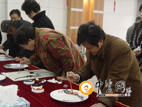 中國工藝美術(shù)大師、景德鎮(zhèn)陶瓷館館長寧勤征、景德鎮(zhèn)陶院教授曹春生、景德鎮(zhèn)高專教授王安維、江西省工藝美術(shù)大師孫燕明、江西省美院副教授祝正茂、景德鎮(zhèn)美術(shù)館副館長吳國興、陶瓷藝術(shù)家余希平、陶瓷雕塑家劉德明等,與江西省工藝美術(shù)大師董如雄等20余名中國國畫院江西分院的高級院士們,以陶瓷筆會的方式,在一起共慶元宵佳節(jié)。