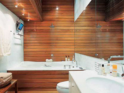 木質(zhì)十足的桑拿間感覺,在享受輕松洗浴的時(shí)候還能看喜歡的電視節(jié)目。
