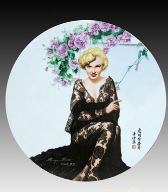 詹明榮近年來致力于陶瓷油畫的探索。陶瓷釉上新彩顏料源于西方,用油調制,可以說本來就是一種油畫顏料,但畫在瓷上,要經過燒制,比布上油畫更難掌握。他反復訓練,不斷累積經驗。他創(chuàng)作了《仙子臨風圖》大型瓷板油畫,畫中的七仙女栩栩如生,飄若行云。2006年,時美國著名影星瑪麗蓮、夢露誕辰80周年,詹明榮用油畫手法繪制了《繽紛花季》、《似水情懷》、《藍色月華》、《嫣紅玫瑰》四塊瓷板,再現(xiàn)了杰出明星的美麗善良。