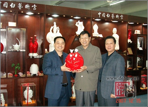 從1989年開始,他曾多次拜訪啟功、趙樸初等名家大師,從中國傳統(tǒng)文化中獲取營養(yǎng)和創(chuàng)作靈感。在拜見啟功教授時,啟先生鼓勵他要繼承德化中國白的傳統(tǒng)技藝,要在傳承與創(chuàng)新上下功夫。啟先生談了兩個觀點:一是中國白追求的最高境界應(yīng)像玉的境界,沒有上釉更能體現(xiàn)玉的質(zhì)感;中國紅應(yīng)追求的是紅而雅,美而艷,亮而柔的藝術(shù)境界。二是德化瓷雕不要局限于佛像彌勒、觀音之類的傳統(tǒng)題材,搞藝術(shù)的一定要貼近生活、反映時代,才更有感染力。對德化瓷有著天然靈氣的陳仁海,在大師的指點下,上下求索,歷盡千辛萬苦,終于以獨(dú)特的理念與超常人的執(zhí)著,叩開了陶瓷藝術(shù)的大門。經(jīng)過十幾年的潛心鉆研與實踐,終于創(chuàng)造出白瓷沒有上釉而溫潤、明凈、精巧、秀雅與玉媲美,不是白玉更勝白玉的“中國白”;研制開發(fā)了以中國白技藝為核心的“中國紅”、“描金彩繪中國紅”、“多彩冰裂沙金結(jié)晶山水中國白”、“五彩青花描金中國紅釉中國白”等“中國白”系列精品、珍品和極品。