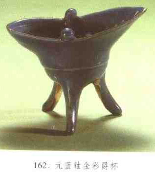 酒具。夏、商、周時(shí)代盛行陶質(zhì)或青銅質(zhì)的爵.明清瓷器造型多仿古之作,福建德化、浙江龍泉、江西景德鎮(zhèn)等窯均曾燒制瓷爵,俗稱“爵杯”。器形仿青銅器式樣、用于陳設(shè)或祭祀。(見(jiàn)圖162)