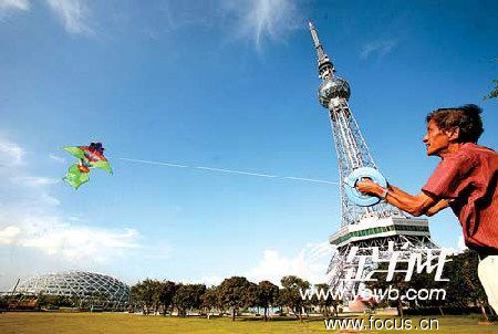 在文華公園,市民正在興致勃勃地放風(fēng)箏