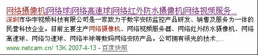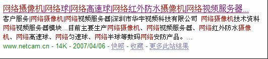 從營(yíng)銷(xiāo)的角度我們還得考慮區(qū)域性質(zhì),比如安防行業(yè)發(fā)集發(fā)地為深圳,那么搜索深圳網(wǎng)絡(luò)攝像機(jī)將成為一大熱點(diǎn),所以我們的關(guān)鍵一定要有根據(jù)性的來(lái)作出判斷,再看筆者所優(yōu)化的深圳網(wǎng)絡(luò)攝像機(jī)一詞表現(xiàn)如何。