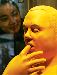 “耐克”鞋里印著仕女圖,胖漢閉著眼睛吮手指,小鳥倚著籃筐棲息……這些有趣的畫面是陶瓷名家的奇思妙想。“燭光瓷語——2008上海世界現(xiàn)代陶瓷藝術(shù)展”正在上海工藝美術(shù)博物館舉行。來自中國、美國、荷蘭、新西蘭等9個(gè)國家的26名藝術(shù)家?guī)?00多件陶瓷珍品。