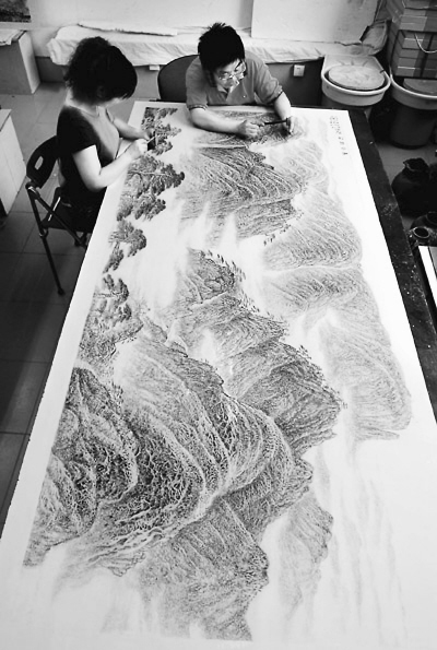 日前,由山東省工藝美術(shù)大師孫兆寶創(chuàng)作的目前世界上最大的刻瓷作品在淄博完成。作品以黃河、泰山為題材,長(zhǎng)2.6米,寬1.2米。
