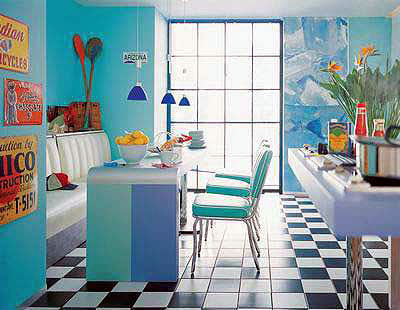 廚房的墻面必須以實用為主,但新型材料的出現(xiàn)為其裝飾功能奠定了基礎(chǔ)。在能解決油煙的前提下,你可以嘗試使用涂料和墻紙,它們色彩艷麗,花紋豐富,一改廚房墻壁單調(diào)的局面。這時選擇的涂料墻紙要有很好的耐擦洗性和多層覆蓋性。在水池和灶臺附近,可以用玻璃、金屬等合成材料制作的隔油層釘在墻上。