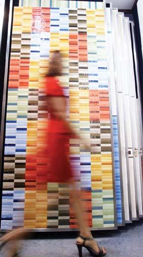 那些開著小花兒的、彩虹般絢麗的、有著皮質(zhì)手感的瓷磚們恣意地釋放著魅力,抓住你的眼球。站在它們面前,忍不住幻想,客廳、廚房、衛(wèi)生間“穿”上它們會(huì)是怎樣的表情呢?請你來和我們一起暢想。