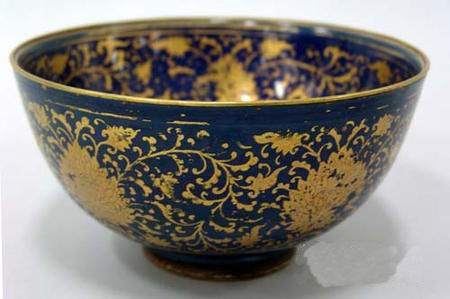 代萬歷蘭釉描金花卉碗(日本原裝木盒)