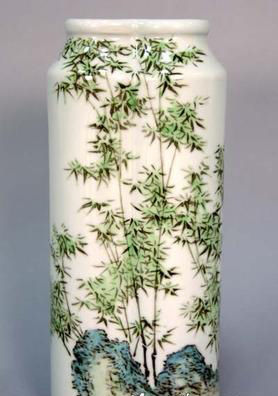 民國徐仲南款粉彩淺絳竹石雙連瓶