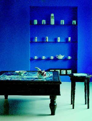 “海上青花”便是這樣一間經(jīng)營(yíng)著青花瓷的鋪?zhàn)。主人海晨是一位在陶藝界頗見名聲的年輕女藝術(shù)家,曾經(jīng)跑遍中國(guó)所有的陶瓷窯,最終結(jié)緣于景德鎮(zhèn)的青花瓷,十?dāng)?shù)年來不離不棄,而店鋪中所有的青花瓷擺設(shè)與器皿,均是出于她的設(shè)計(jì)和制作。她是真正懂得青花瓷內(nèi)涵的人,因此還能另辟蹊徑,為它覓得新的匹配:別人家的青花瓷只用來做杯、碗、花瓶之類的器皿,而她卻尋來那些經(jīng)絡(luò)突出、紋理豐富、色澤中含有歲月積淀之韻味的老木料與青花瓷結(jié)合,制成手繪山水畫多格抽屜柜、扶手相連的“聊天椅”、典雅別致的桌子茶幾……充滿令人差異的別致趣味。而老木料與青花瓷的搭配,以古樸配清雅,以沉著配飄逸,用她的話說,“既有呼應(yīng),又可以互相壓得住”,正是最終在懂得的人手中得其自然、自適了。