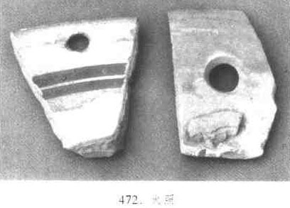 陶瓷器焙燒時(shí)測(cè)定窯內(nèi)溫度的窯具,又稱(chēng)“照子”或“火標(biāo)”,亦稱(chēng)“試片”。以瓷土制作、往往是用碗等器物的坯件加工而成。形狀一般為三角形,上平下尖。上半部施釉、并鏤一圓孔。使用時(shí),將其置于窯內(nèi)從觀(guān)火孔可以看到的位置,需驗(yàn)火時(shí)用鐵鉤將其從觀(guān)火孔鉤出。每燒一窯要驗(yàn)火多次,每驗(yàn)一次,就鉤出一個(gè)?杉皶r(shí)掌握窯內(nèi)溫度和氣氛的變化,十分有利于瓷器的燒成;鹫帐⑿杏谒未,是簡(jiǎn)便有效的測(cè)溫器具。(見(jiàn)圖472)