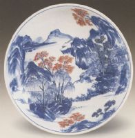 青花釉里紅山水圖盤