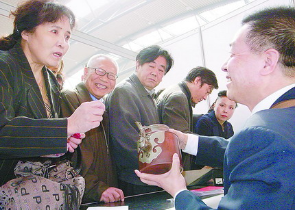 3月17日,在2008中國西安國際藝術品收藏博覽會上,鑒定專家現(xiàn)場免費為藏友鑒定藏品。本次展會全面展示古玩、字畫、陶瓷等藝術藏品,為西安提供了一個高規(guī)格、國際化的藝術展示交易平臺。(巨躍先攝)