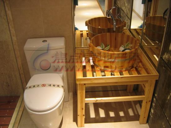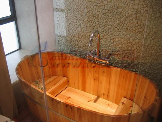 把充滿自然氣息的木桶作成洗手池與浴缸,給浴室增添不少田園味道。