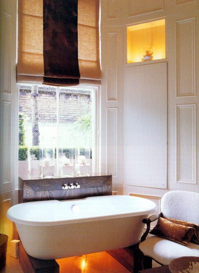 不少年輕白領(lǐng)喜歡把歐式帶立腳的浴缸擺在主人房——甚至客廳里,覺(jué)得很時(shí)尚。這種仿古浴缸有的為平口,有的是斜口。斜口17173的浴缸高口部分便于靠背,使沐浴的愜意感加深。但是,仿古浴缸并不是所有的衛(wèi)生間都可以安裝的,它需要有較大的空間,如果要追求更多的情調(diào),這類(lèi)浴缸最好不要緊靠墻壁,至少留有20到30厘米的余地,可適當(dāng)裝飾一點(diǎn)羅曼蒂克的東西,像燭臺(tái)什么的,就是窗簾的位置也需要考慮好,半遮半掩的誘惑性最強(qiáng)。