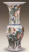說 明: 設(shè)色艷麗,對比強(qiáng)烈,并采用了五彩加金,加藍(lán)的新工藝.