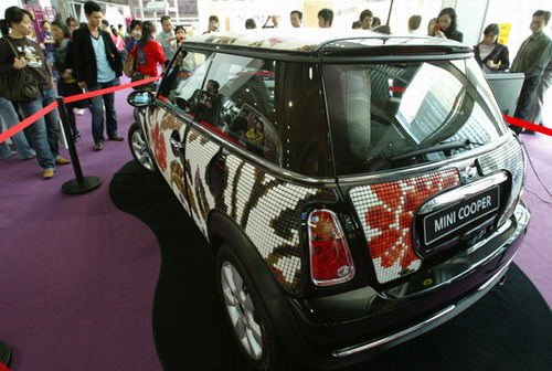 圖為11月28號(hào)在廣州舉行焦點(diǎn)房地產(chǎn)網(wǎng)搜狐網(wǎng)www.focus.cngoodfeel圖行天下校友錄搜狗17173www.focus.cn的2006廣州國際設(shè)計(jì)周展覽中的一部用瓷磚裝飾的迷你Cooper車。樣子是挺好看,不過就是不知道性能怎么樣。