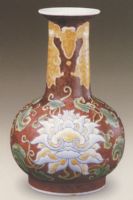 說 明: 康熙琺瑯彩瓷器以盤、碗較為多見,瓶類器甚為罕見,而且康熙琺瑯彩瓷器多以料彩寫款.此器既為瓶類器,又有與眾不同的刻款,故彌足珍貴.