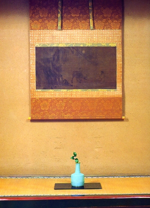一個(gè)專場(chǎng)僅兩件拍品:一個(gè)花瓶+一幅畫。這是香港蘇富比的精心包裝。因?yàn)檫@樣一瓶一畫的組合,源于日本室町時(shí)代(1333-1573年),一個(gè)刻意追尋中國古代文物(時(shí)稱“唐物”)的年代。當(dāng)時(shí)流行一種名叫“床之間”的壁龕,專門供奉這樣的一件花瓶加一副古畫的組合。而這次拍賣的兩件拍品,都來自日本藏家。