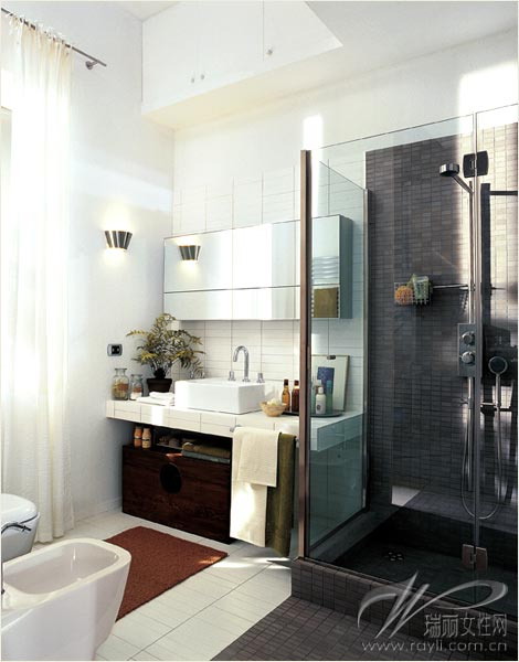 面盆下面的空間完全可以放得下一個較大的儲物箱,在安排這樣的的儲物方式時,要注意儲物箱的密封效果,并且需要衛(wèi)浴間有較好的干濕分區(qū)。