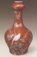珊瑚紅地粉彩花鳥紋瓶