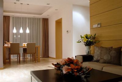 從客廳處往餐廳望去,雖然撥給客廳的空間不大,但通過(guò)有效的燈光裝飾,讓小空間看起來(lái)溫馨而緊湊。