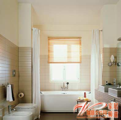 對浴室來說,空間不大,用布藝裝點溫暖的感覺比較簡單。無論浴室的顏色深或淺,減少光滑感是令它變暖的關(guān)鍵。要盡量保留浴室的自然光線,以便在白天用陽光溫暖衛(wèi)浴空間。冬天沐浴之后難免會感到溫度略低,鋪上與整個浴室色調(diào)相配的地毯,在冰涼的地磚與腳之間便有了溫暖的阻隔,視覺和觸覺都溫暖了許多。